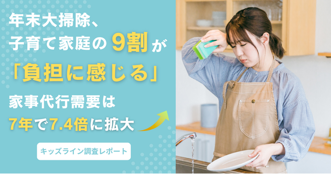 年末大掃除、子育て家庭の9割「負担に感じる」。家事代行需要は7年で7.4倍に拡大<キッズライン調査レポート>