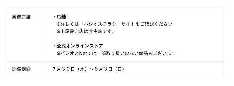 公式オンラインストア パシオスNetでは新規会員登録でのクーポンプレゼントや店舗受取サービスなど、様々な特典をご用意しております。(https://www.paseos-net.com/)