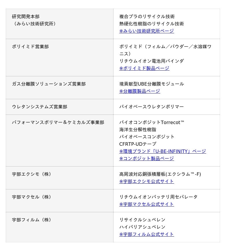 今回の展示会では、地球環境問題の解決に貢献するスペシャリティ化学へのシフトを進めているUBEグループが、「サステナビリティ」をテーマに技術力や新しい取り組みをご紹介いたします。