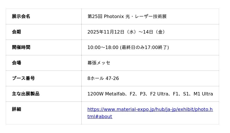 レーザー加工機ブランド「xTool」を展開するMakeblock Japan株式会社は、2025年11月12日(水)から14日(金)まで幕張メッセで開催される、日本最大級の光・レーザー技術展「第25回 Photonix」に出展いたします。