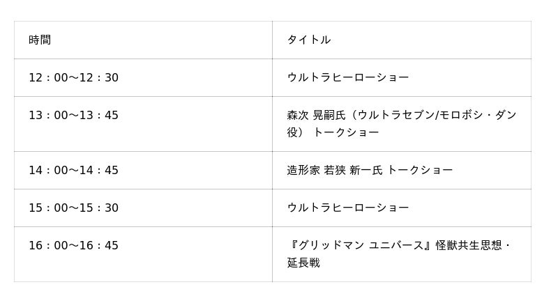 「ウルトラヒーローショー」時間 12:00~12:30/15:00~15:30