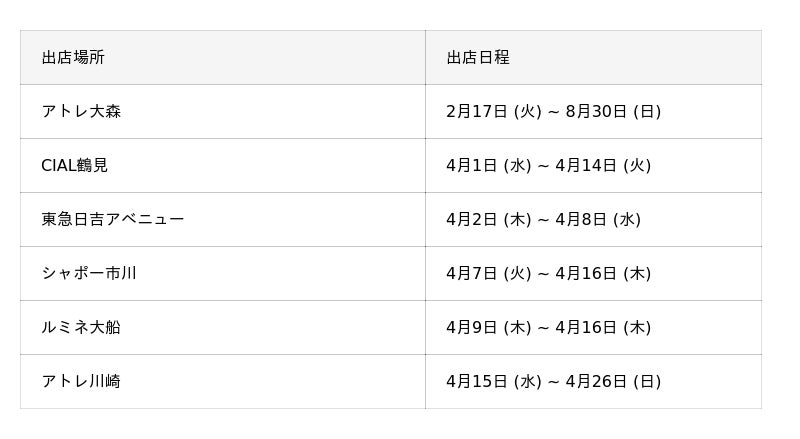 ※出店日程は予告なく変更になる場合がございます。予めご了承ください。