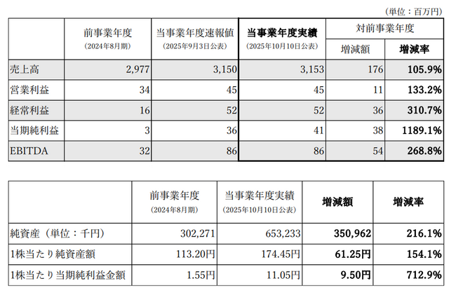 【地域新聞社】2025年8月期決算発表に関するお知らせ~前年比で大幅な増収増益を達成、業績トレンドが明確に好転~