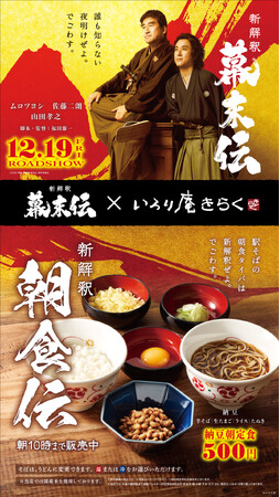 映画『新解釈・幕末伝』 × 『いろり庵きらく』タイアップ企画ムビチケやオリジナルグッズが当たるSNSキャンペーン、映画キャストによる店内放送も実施予定!