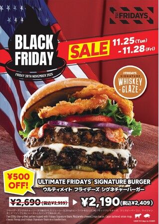 【TGIフライデーズ】アメリカの熱狂、今年も上陸。フライデーズの 「ブラックフライデー」 が始動!人気バーガー「ULTIMATE FRIDAYS SIGNATURE BURGER」が500円OFF!