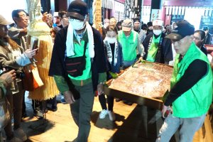 66・5キロのジャンボおはぎ奉納 祈とう後配布「足腰に御利益」 君津・神野寺