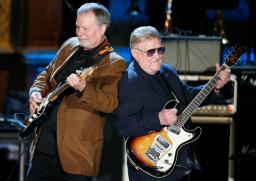 2008年3月、米ニューヨークで演奏するベンチャーズのドン・ウィルソンさん(右)(AP=共同)