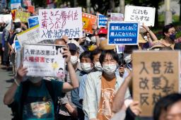 国会審議中の外国人の収容・送還ルールを見直す入管難民法改正案に反対するデモが20日、大阪市中心部であり、約500人が「人権無視した法案いらない」「難民受け入れ増やそう」と声を上げた。