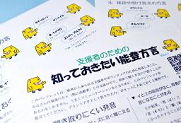 能登半島地震の支援で被災地を訪れた人たちに能登の方言を理解してもらおうと、東北大方言研究センター(仙台市)がパンフレットを作成した。被災者らとのコミュニケーションを助け、適切な支援活動につなげるのが狙い。ホームページにも掲載されている。能登でよく使われる「キノドクナ」は「ありがとう」という意味があるという。