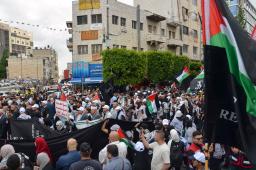 【ラマラ共同】パレスチナは15日、1948年のイスラエル建国で約70万人が難民となったパレスチナのナクバ(大惨事)から77年を迎えた。この日に先立つ14日、ヨルダン川西岸ラマラで多数の市民がパレスチナ旗を掲げて目抜き通りを行進。「ナクバはまだ終わっていない」と訴え、自治区ガザでの戦闘終結と故郷への帰還権を求めた。
