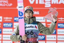 【エンゲルベルク(スイス)共同】ノルディックスキーのワールドカップ(W杯)ジャンプは21日、スイスのエンゲルベルクで男子個人第11戦(ヒルサイズ=HS140メートル)が行われ、小林陵侑(チームROY)が133メートル、132メートルの合計310・0点で今季2勝目を挙げた。1回目の5位から逆転した。通算37勝目で、ヤンネ・アホネン(フィンランド)を抜き歴代単独6位となった。