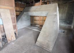 大田原市の「那須与一伝承館」によると、鎮碇はコンクリート製。高さ約2・3メートル、横約3・8メートル、奥行き約2・4メートルで、両脚の上に梁を乗せたようなコの字形をしている。離れた場所にある高い塔からワイヤを張り、飛行士が乗った疑似飛行機をつるして滑らせることで、着陸時の操縦感覚を訓練したと考えられている。