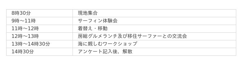※サーフィン体験料、昼食代、ワークショップ体験料、ボード及びウェットスーツレンタル料、保険料、消費税込み。