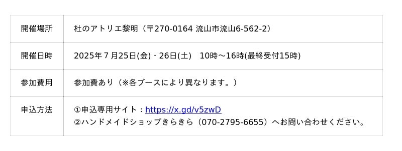 芸術、文化活動の場としてご利用いただける杜のアトリエ黎明(主催:株式会社流山ツーリズムデザイン)は、夏のワークショップ祭り第3弾を2025年7月に開催決定いたしました。