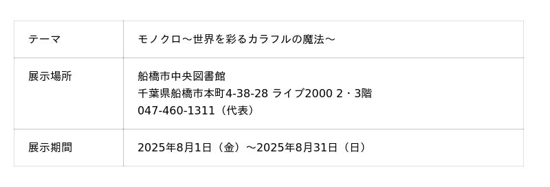 2025年ブックフェア 船橋市中央図書館 展示期間8月1日~8月31日
