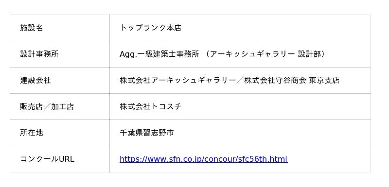 この度、当社子会社である株式会社アーキッシュギャラリー(本社所在地:名古屋市中区、以下「アーキッシュギャラリー」)が設計・施工を手掛けた「トップランク本店」(所在地:千葉県習志野市)が、昭和フロント株式会社が主催する「第56回ストアフロントコンクール」にてグランプリを受賞いたしました。
