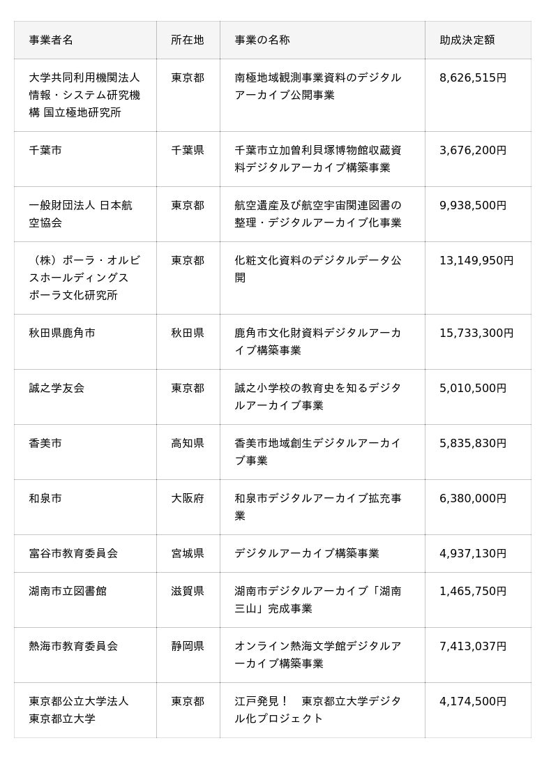 「郷土(地域)資料」・「貴重資料」等のデジタルアーカイブ化をサポートする提案型助成事業。地域の課題解決やイノベーションにつながる先進的・実践的な事業を応援