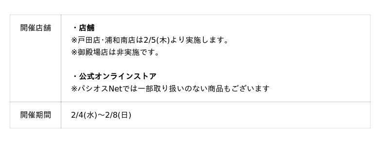 - 【パシオス決算感謝SALE】