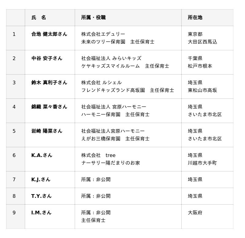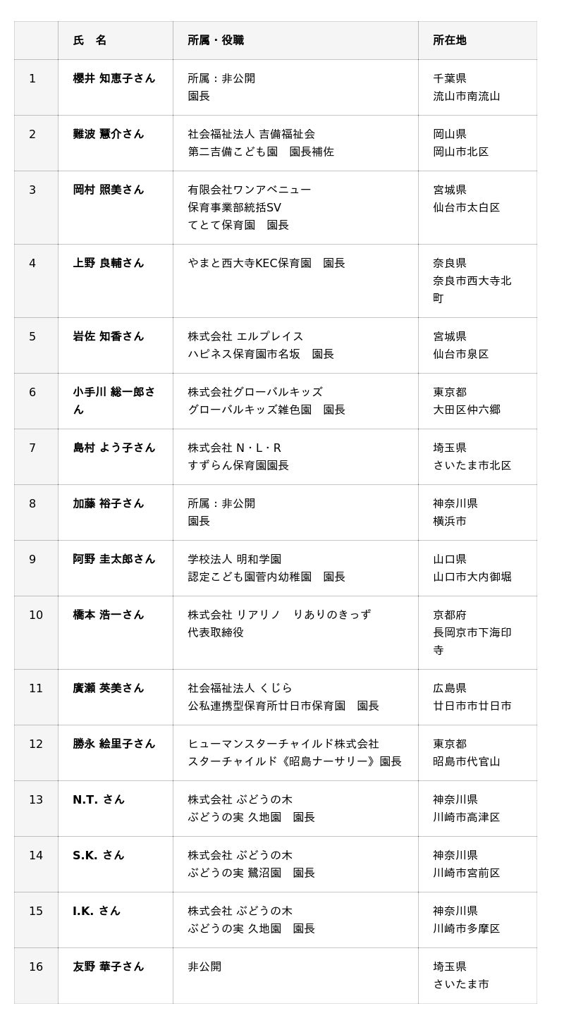 今回登録された保育施設運営管理士リスト