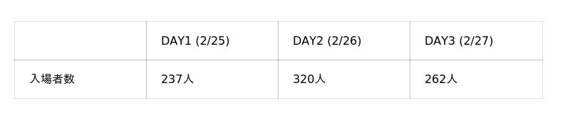 【表の見方】 JFG入場者数を日別に示します(DX総合EXPO全体の来場者数ではなく、JFGゲート通過者数)。