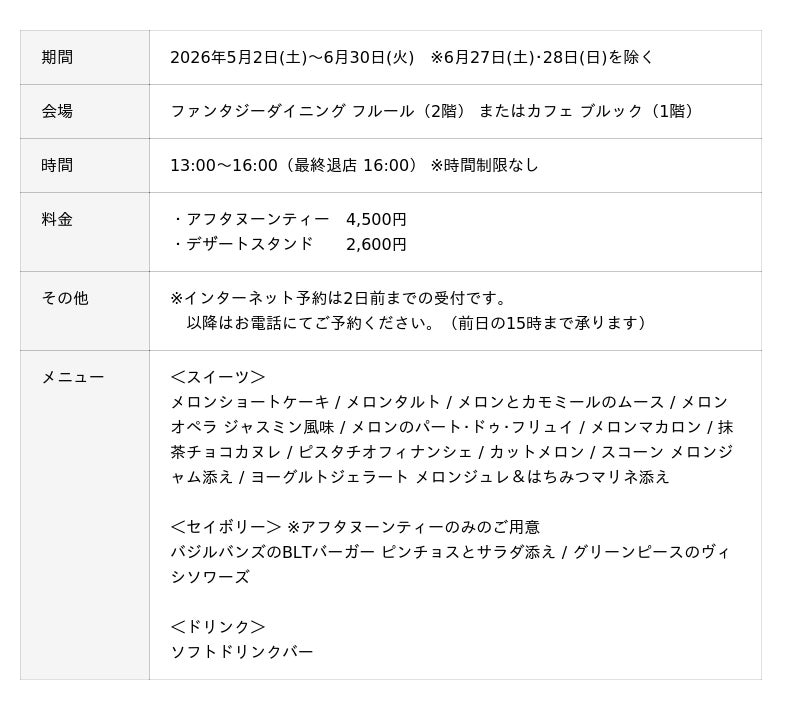 メロンアフタヌーンティー・デザートスタンド ―初夏の翠彩(すいさい)― 概要