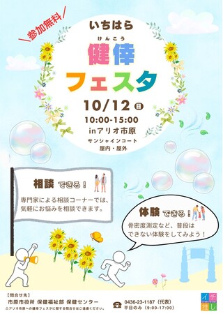 【千葉県市原市】10/12(日)アリオ市原で「いちはら健倖フェスタ」開催