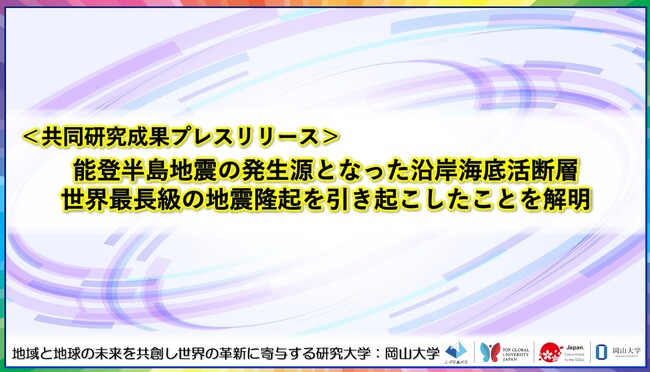 能登半島地震の発生源となった沿岸海底活断層 世界最長級の地震隆起を引き起こしたことを解明〔広島大学, 千葉県立中央博物館, 福岡教育大学, 兵庫教育大学, 山口大学, 岡山大学, 金沢大学〕