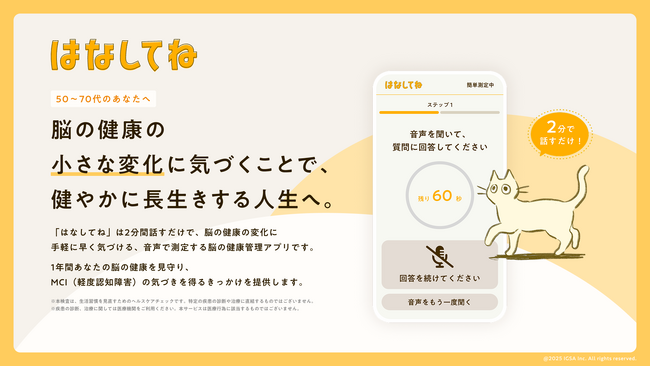 東大松尾研発のIGSA、2分の音声で脳の健康をチェックするサービス「はなしてね」を、8月1日より早期公開版として無償提供開始